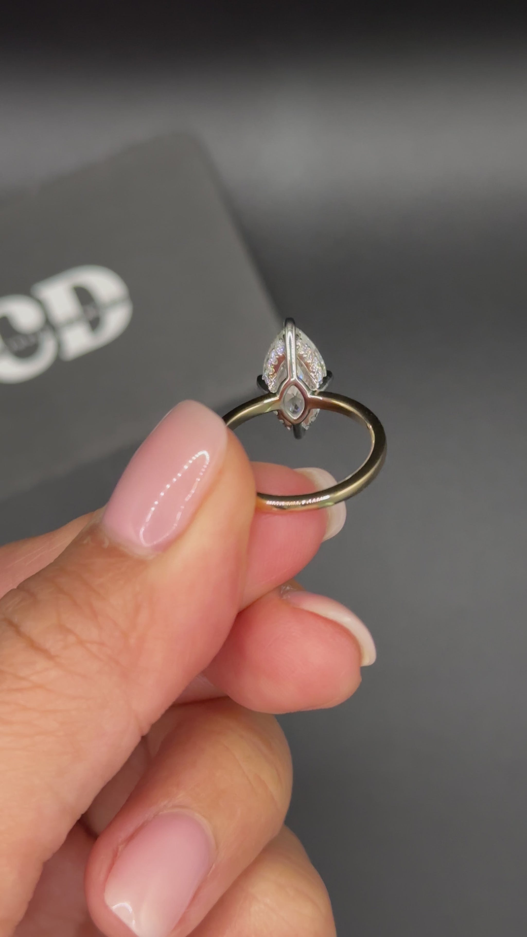 Product Description: This engagement ring features a stunning certified 3.5ct lab grown diamond. The marquise shape stone, with approximate dimensions of 15.5mm x 7.8mm x 4.8mm, is an excellent cut, polished, and symmetrical. All diamonds are hand selected by our diamond experts and have passed a robust QC process. All diamonds are certified, excellent cut and none fluorescence diamond. The Low donut set, 4 petite compass prongs with a hidden halo setting securely holds the diamond, allowing light to travel through its facets.