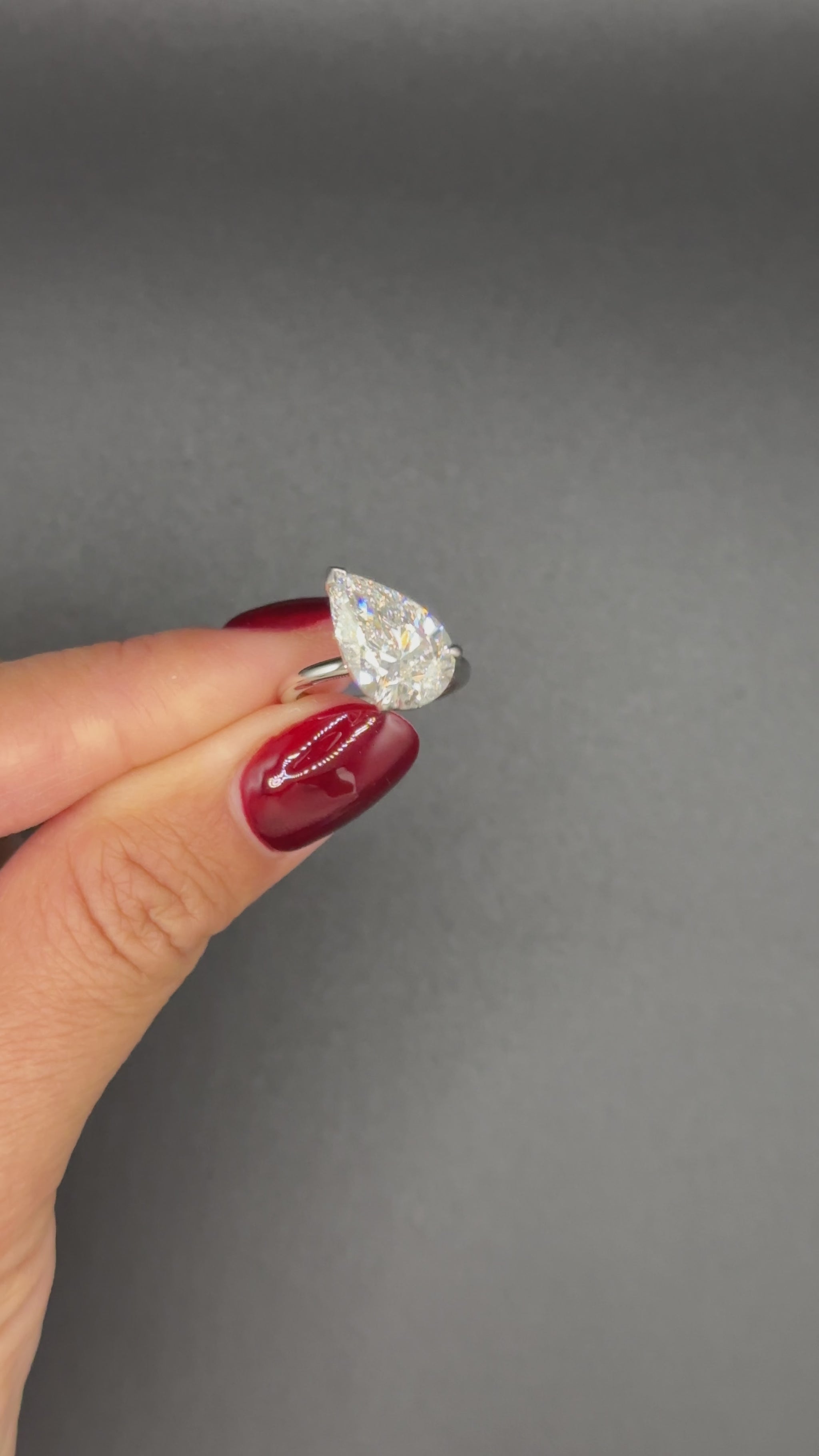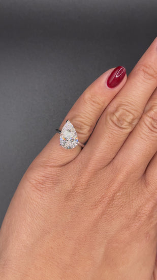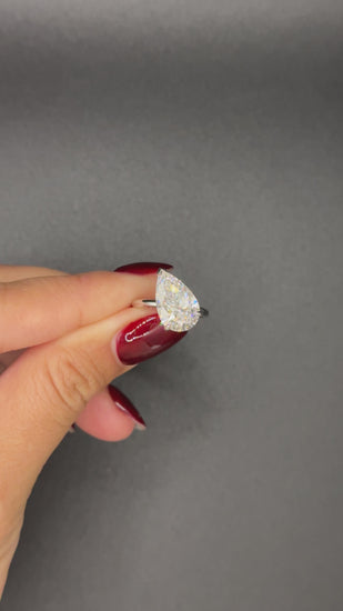Design: Lab Diamond Tilted Pear Engagement Ring 18K White Gold 4ct